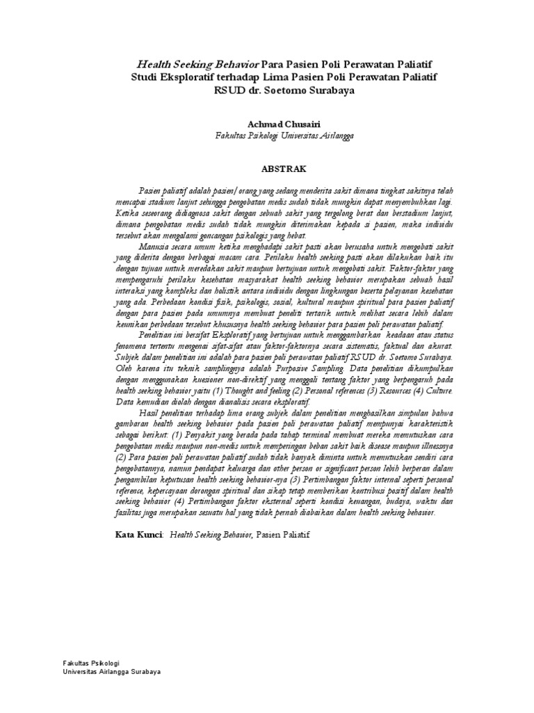 Studies comparing men and women are inadequate in explaining the processes involved in men's help seeking behaviour. Have you ever made a statement to someone just to see their reaction? Pasien paliatif adalah pasien/orang yang sedang menderita sakit dimana tingkat sakitnya telah mencapai stadium lanjut sehingga pengobatan medis sudah tidak mungkin dapat.